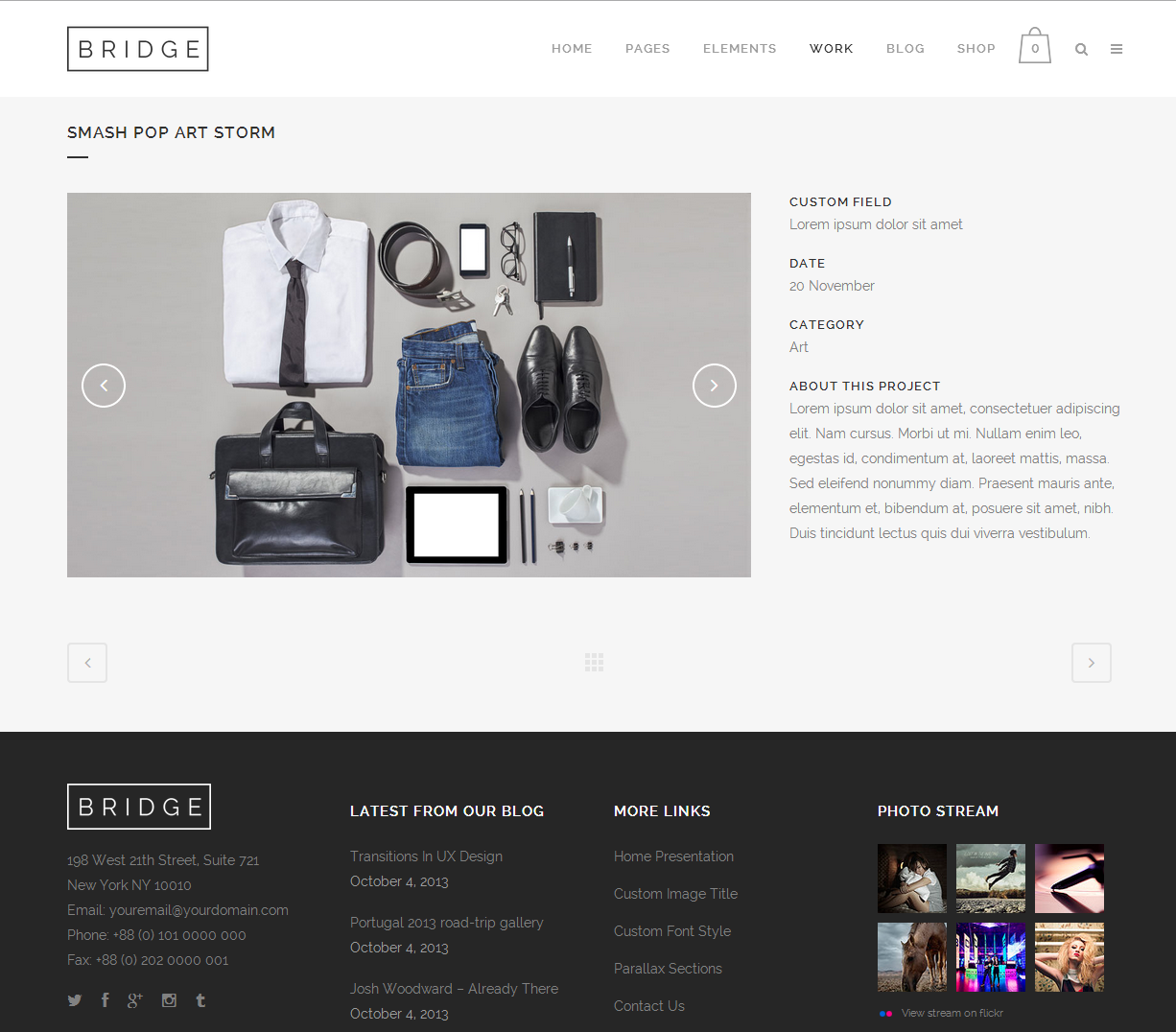 Bridge Theme comes with WooCommerce integration, which allows you to build online shop.