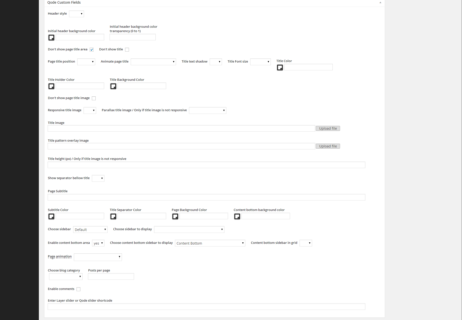 You can setup here global page title properties which can be overriden in qode custom fields for each post/page.