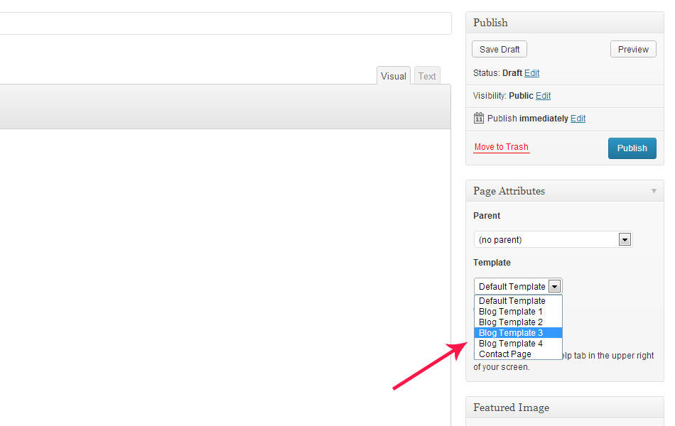 In order to create a blog page, first create a new page and select one of 4 Blog Templates in the right “Page Attributes” menu.