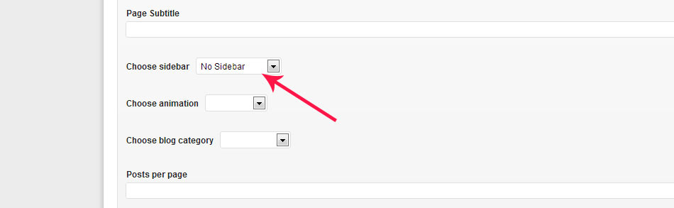 If desired, one of four sidebars can be turned on in the options below editor in Qode Custom Fields section.